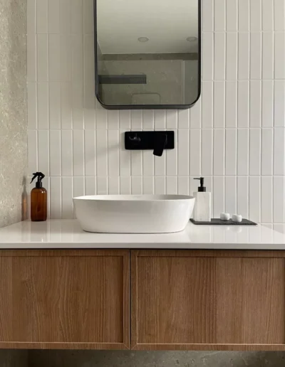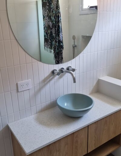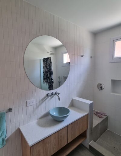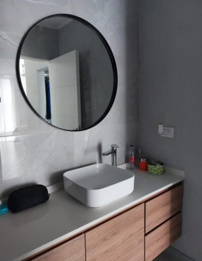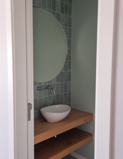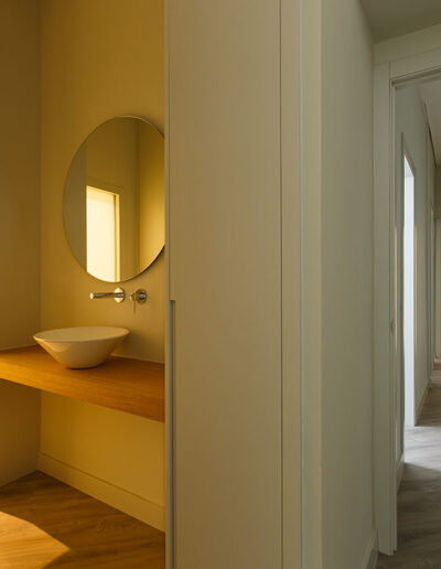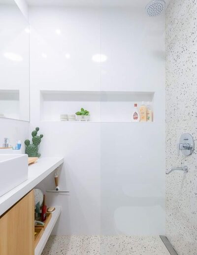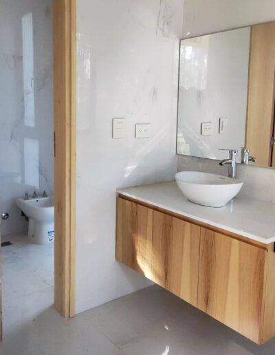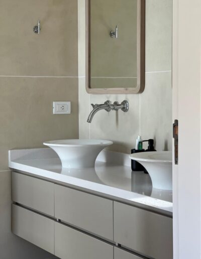 Se incorporó un nicho y mobiliario a medida para aprovechar en su totalidad el rincón del vanitory.