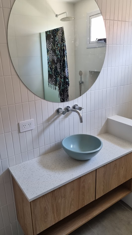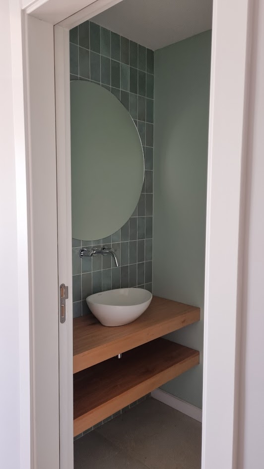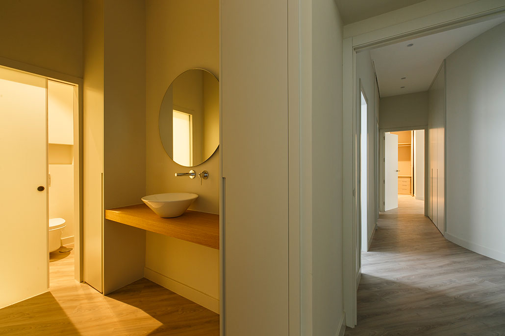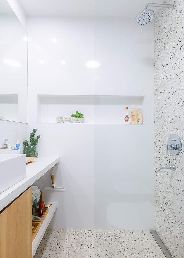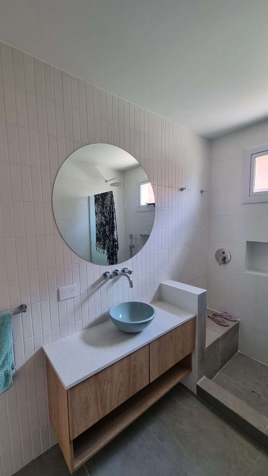 Se incorporó un nicho y mobiliario a medida para aprovechar en su totalidad el rincón del vanitory.