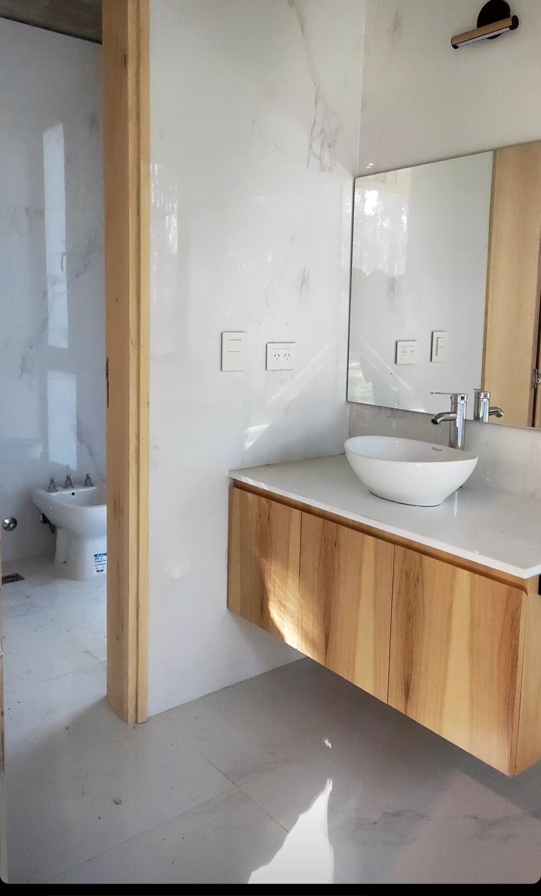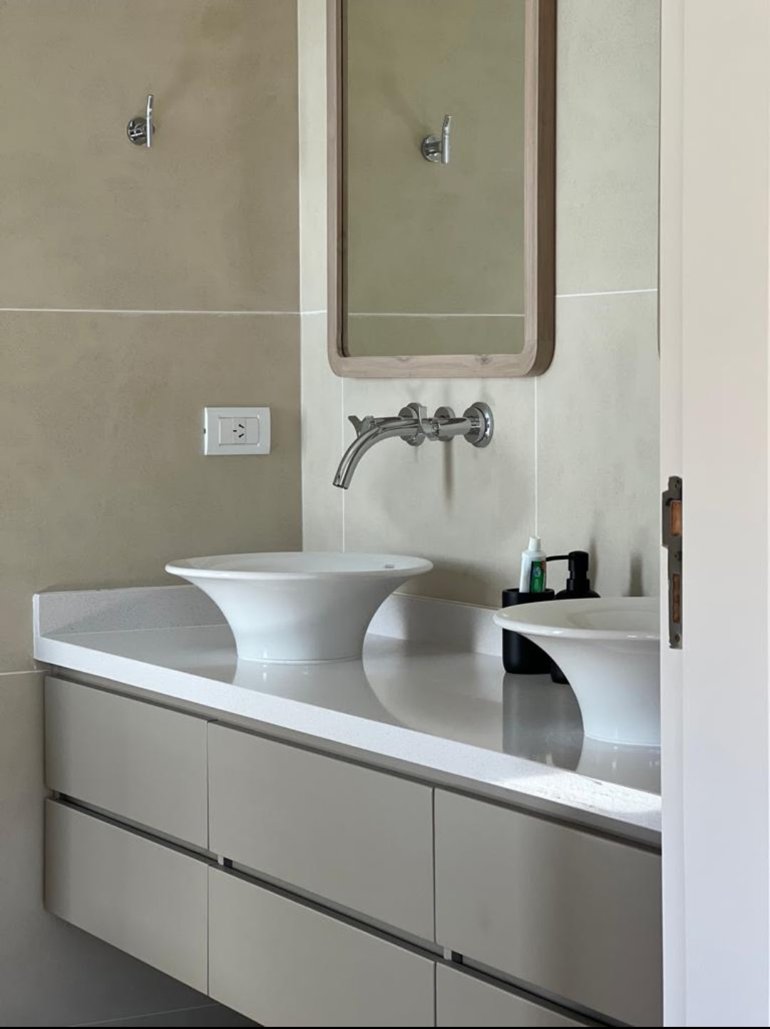 Se sacrificó parte del vestidor (sumamente amplio) para darle vida a este baño.